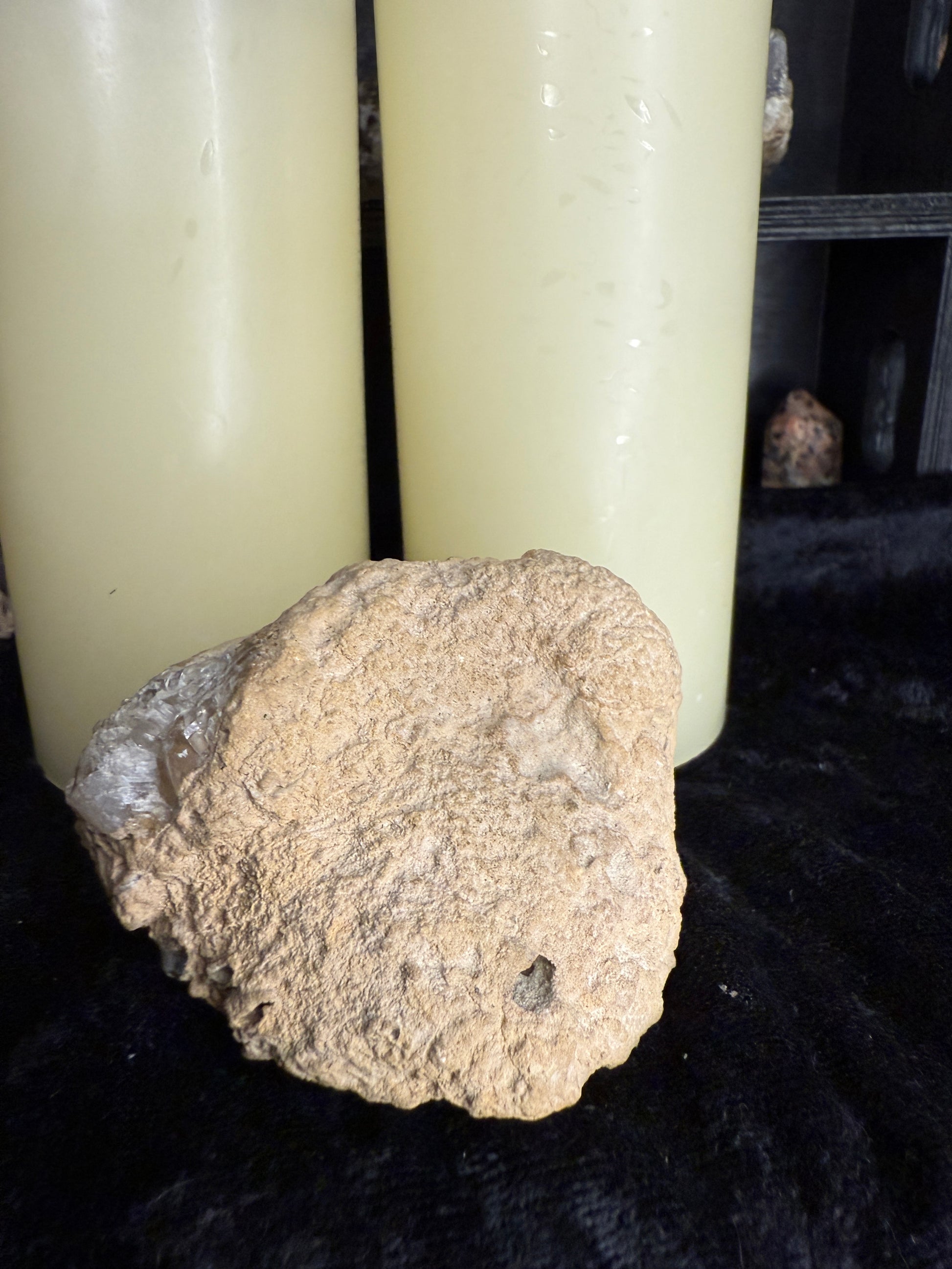 This piece is so interesting and makes a great display piece! I am not sure of the exact species but it’s either a coral or a sea sponge fossil about 450 million years old. Dipped in hydrochloric acid to expose the crystals from the limestone that was coating them. Found in Illinois, hand mined, ethically sourced.