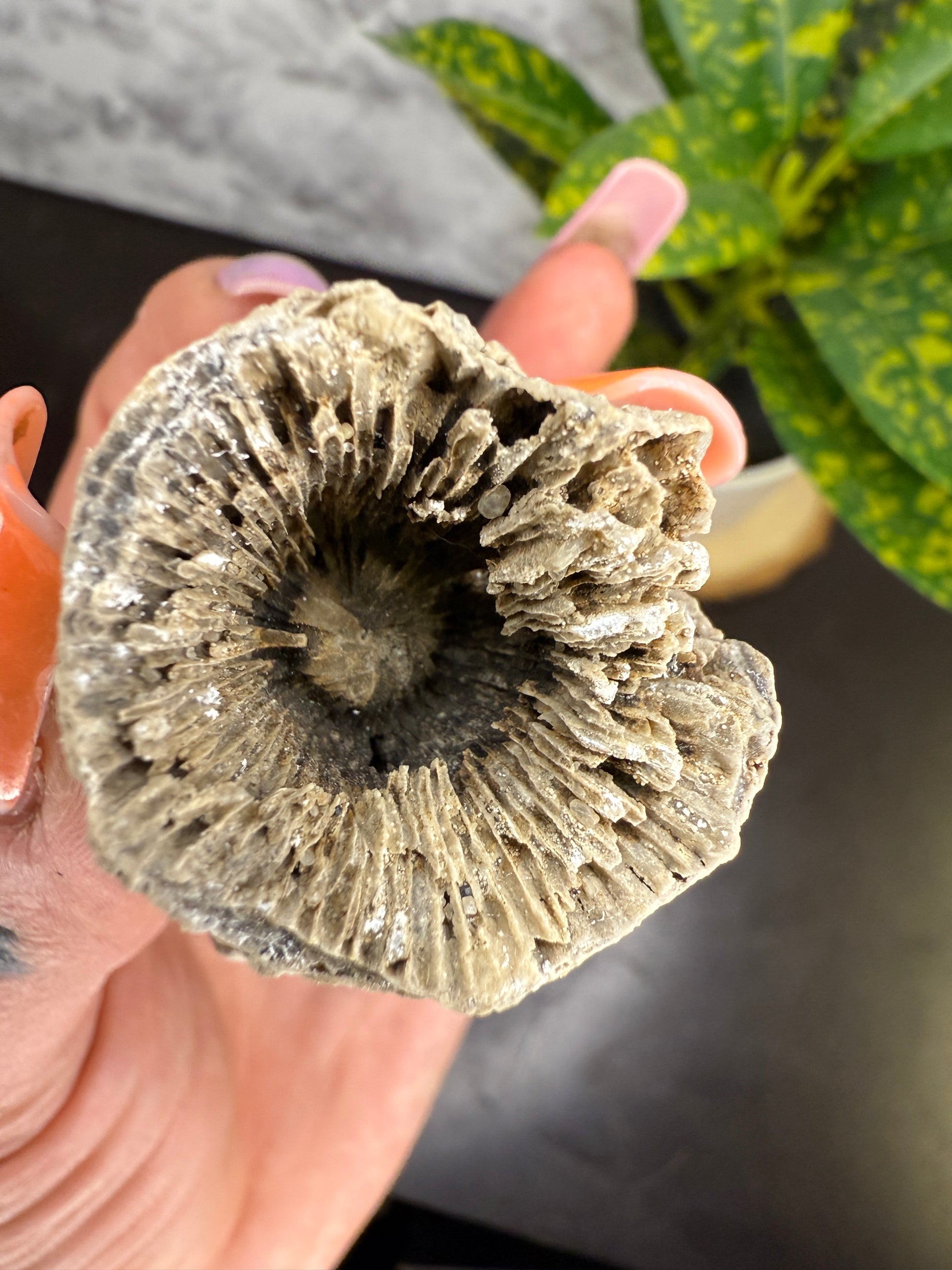 Extremely well preserved texture on the bottom of it. It’s made of dolomite (gray) and quartz with some likely barite and calcite.