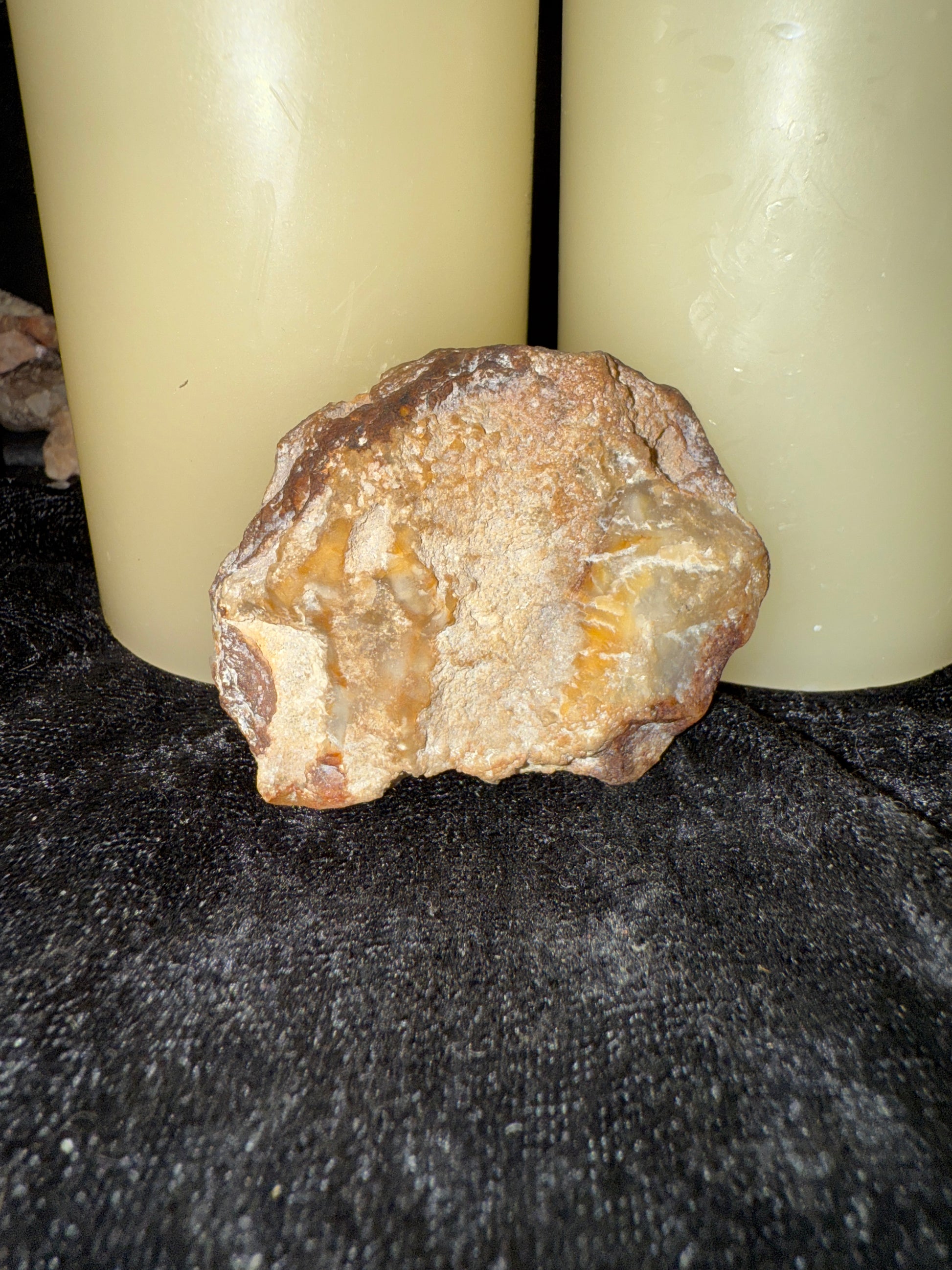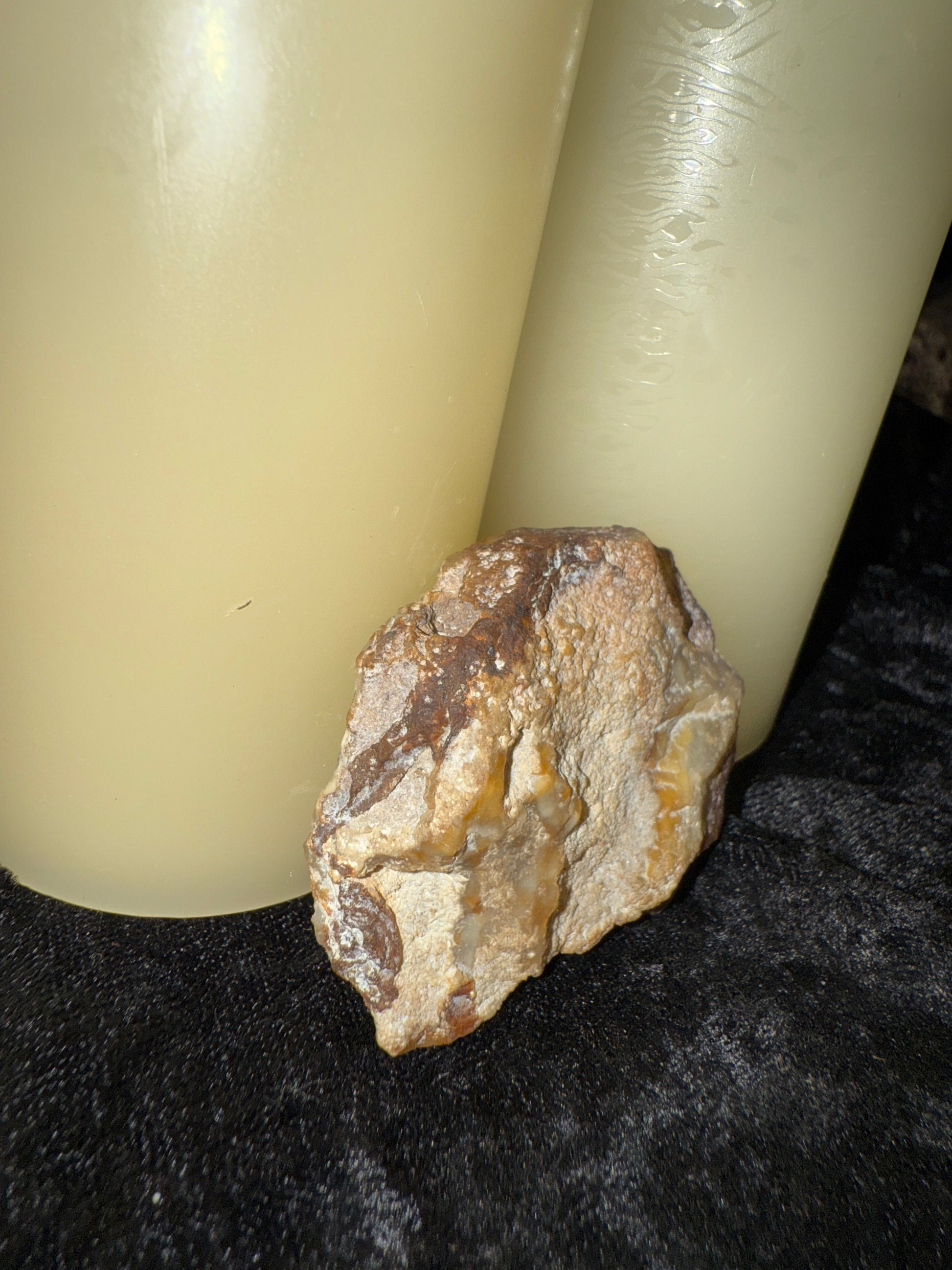 Full of sparkly inclusions and features a hematite fortification band on the outside that plumes into the stone creating a gorgeous glittering shine sprinkled throughout it. This slice came off of a large agate, so this piece is roughly palm sized. Hand mined, ethically sourced, cut and polished in the US.