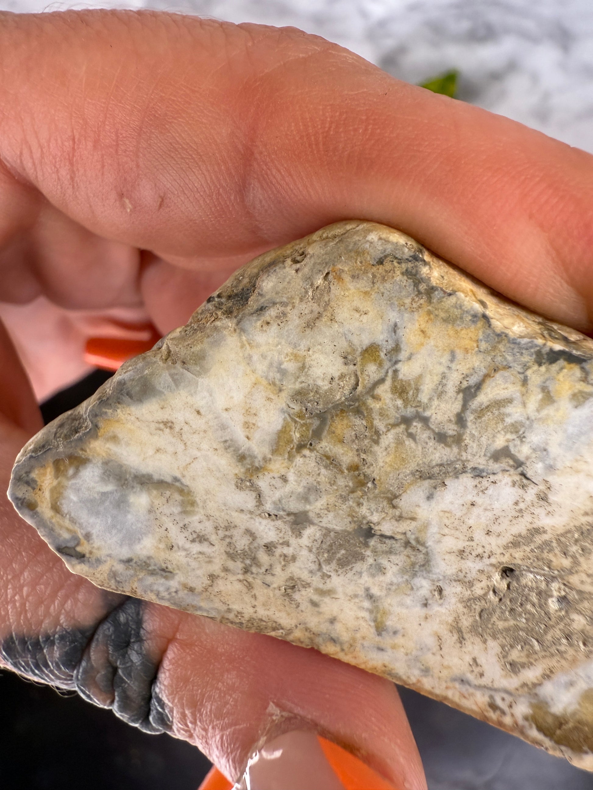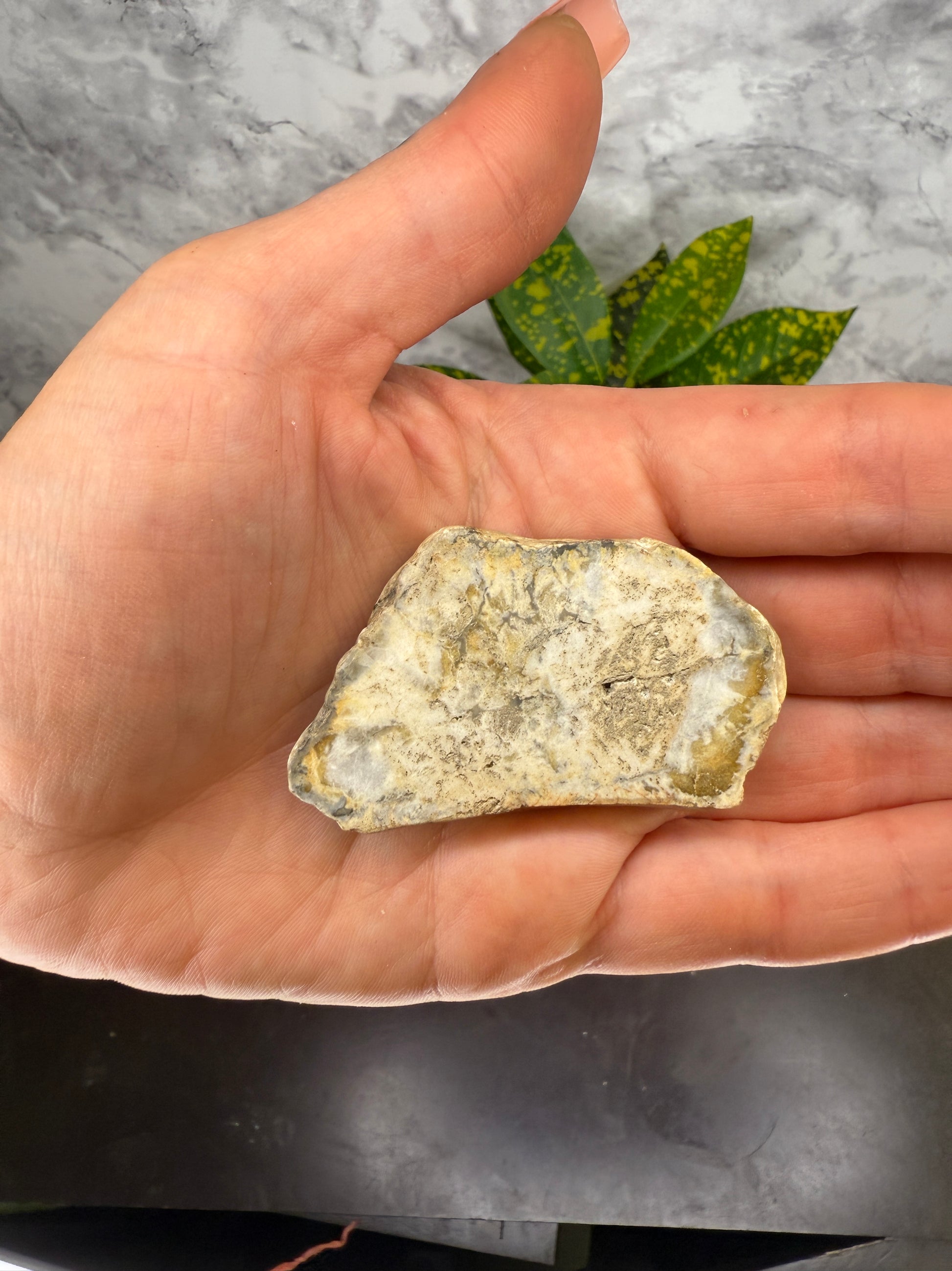 Face polished to a beautiful shine to show off its fantastic colors. “Floral” because it looks like a luxury floral print fabric to me! Has nothing to do with flowers other than it’s vibe. A is an end cut and B is double side polished.
