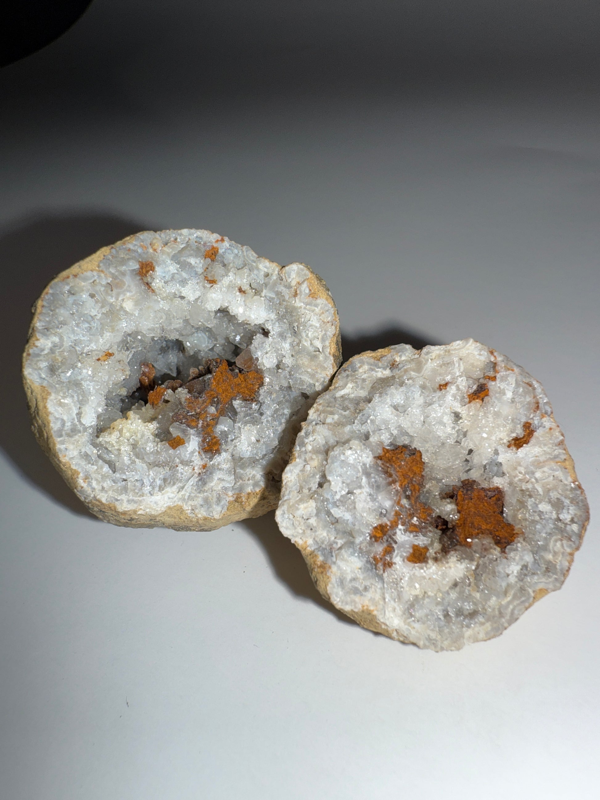 Mineral specimen crystal combo matching Keokuk geode matching pair